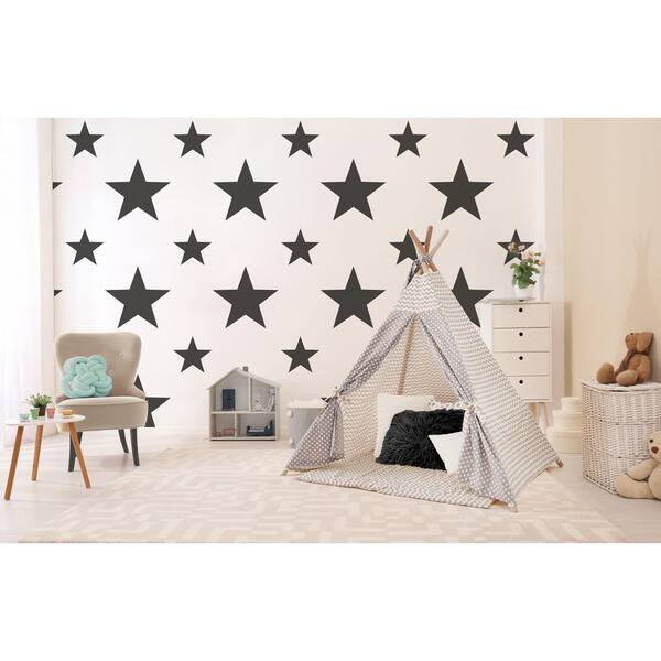 Style Sisters Classic Black Double Star Design Matte Finish Eco-FSC Certified Non-Woven Wallpaper Roll
