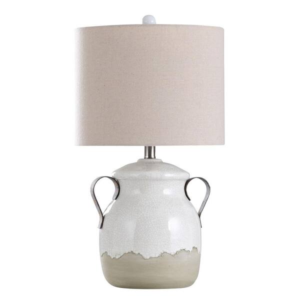 24 in. Cream, Egg Shell Ceramic, Fabric, Metal Table Lamp with Cream Linen Shade