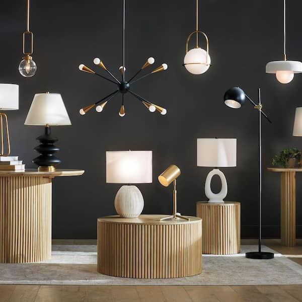 25 in. Gold Table Lamp with Brussels Off White Hardback Fabric Shade
