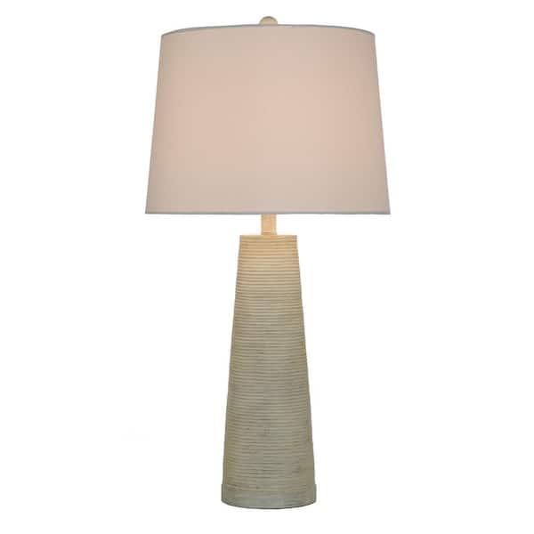 Conical 31.5 in. White Washed, White Urn Task and Reading Table Lamp for Living Room with White Linen Shade