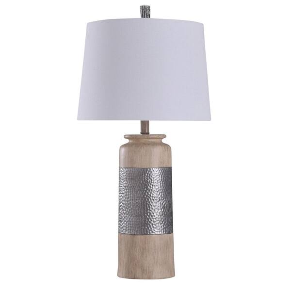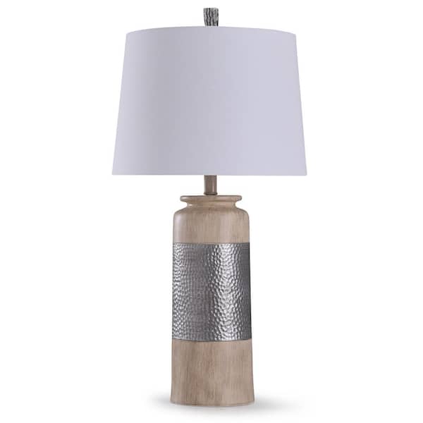 Haverhill - Hammered Banded Table Lamp with Tapered Drum - Weathered Cream, Beige and Silver Finish with White Shade