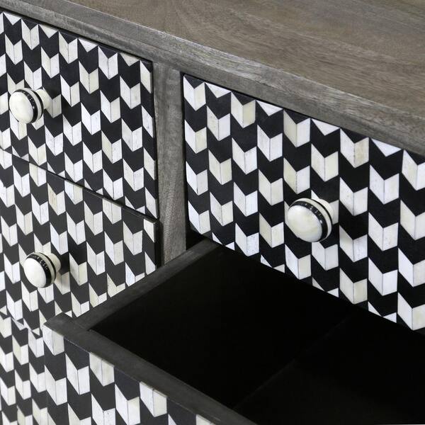Jayden 6-Drawer Chestnut Brown, Black, Ivory Solid Mango, Bone Chest of Drawers