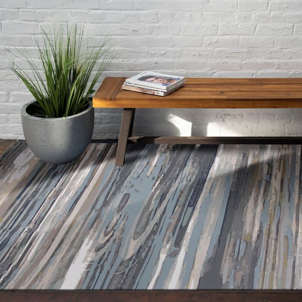 Abstract Blue 6 ft. x 9 ft. Vinyl Area Rug