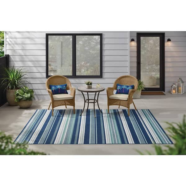 Blue/White 5 ft. x 7 ft. Stripes Indoor/Outdoor Patio Area Rug