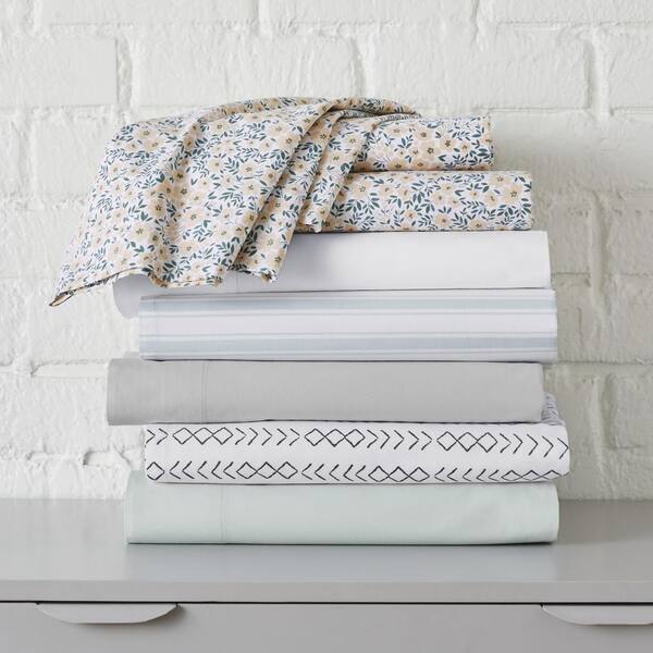 • Green cotton percale sheet set for a hotel-luxury look and feel