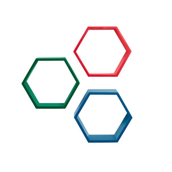 Hexagon Primary Colored Floating Wall Shelves (Set of 3)