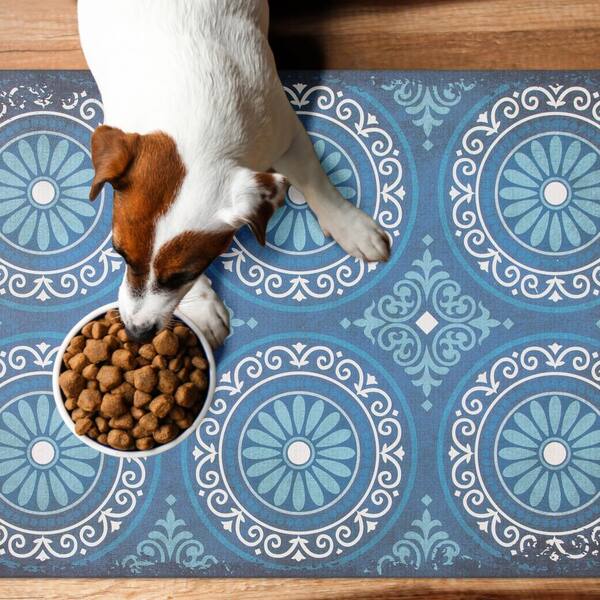 Medallion Blue 2 ft. x 3 ft. Vinyl Scatter Rug