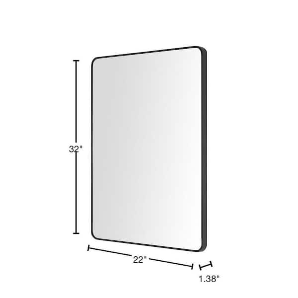 Medium Modern Rectangular Black Framed Mirror with Rounded Corners (22 in. W x 32 in. H)