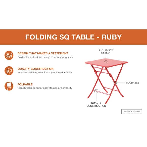 Mix and Match Ruby Folding Square Metal 23.6 in. Outdoor Patio Bistro Table