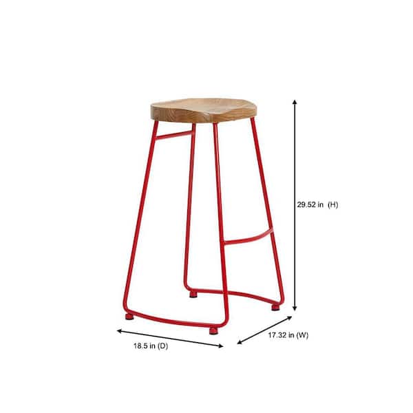 Modern Ruby Red Metal Backless Bar Stool with Wood Seat (Set of 2)