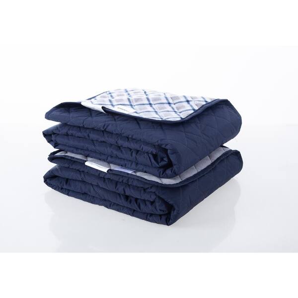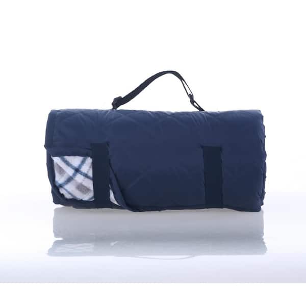 {Puffer with Fleece}+{Dark Blue Gray and Blue Plaid}+{ Nylon/Polyester}+ {" Throw Blanket "}
