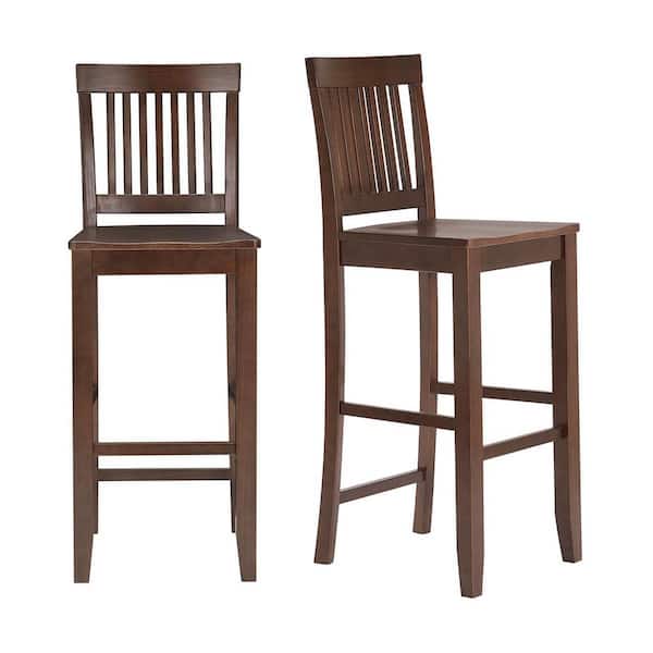 Scottsbury Chocolate Wood Bar Stool with Slat Back (Set of 2) (19.14 in. W x 44.52 in. H)