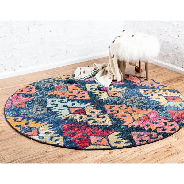 Sedona Desert Navy/Multi-Color 3 ft. x 3 ft. Round Global Area Rug