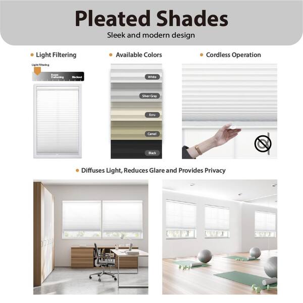 Silver Gray Cordless Light Filtering Polyester Pleated Shades - 25.5 in. W x 72 in. L