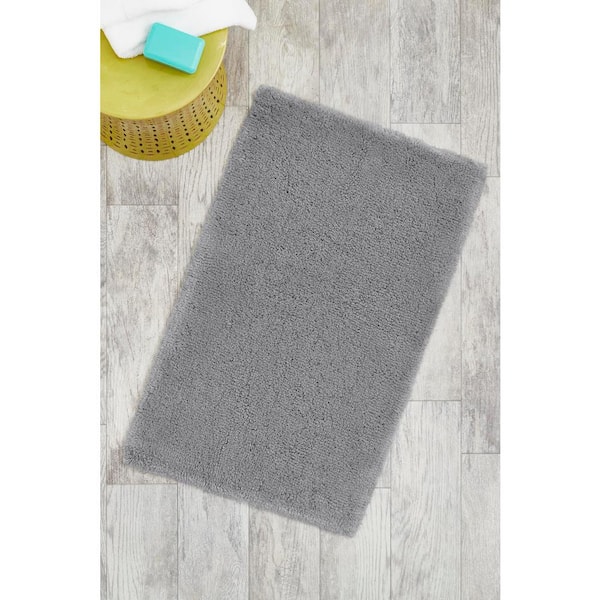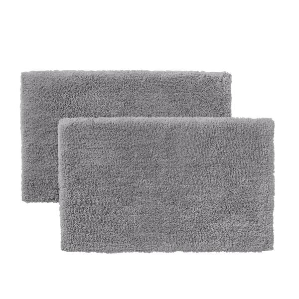 Stone Gray 19 in. x 34 in. Non-Skid Cotton Bath Rug (Set of 2)