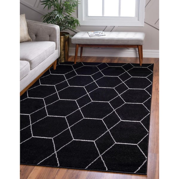 Trellis Frieze Black Doormat 3 ft. x 5 ft. Geometric Area Rug