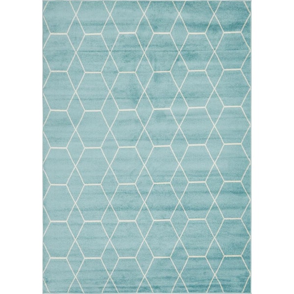 Trellis Frieze Light Blue/Ivory Blue 9 ft. x 12 ft. Geometric Area Rug