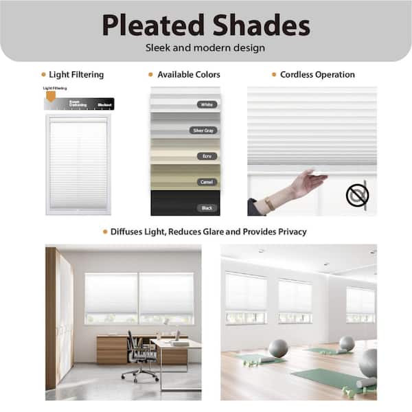 White Cordless Light Filtering Polyester Pleated Shades - 49 in. W x 72 in. L