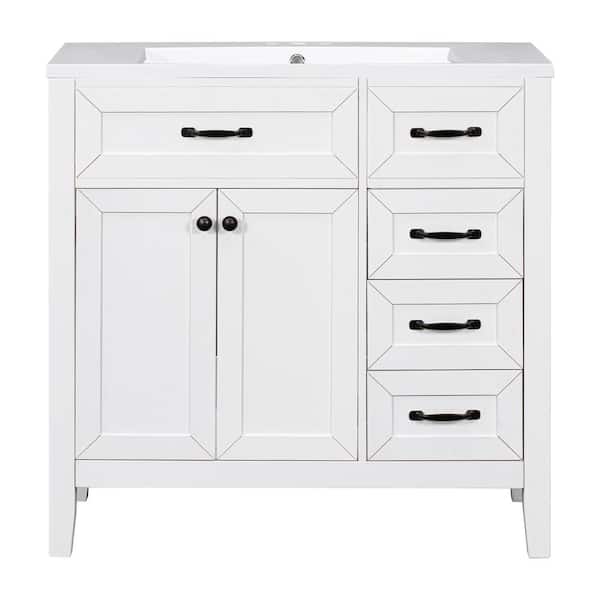 Stylish 36 in. W x 18 in. D x 36 in. H Freestanding Bath Vanity in White with White Ceramic Top, Doors and Drawer