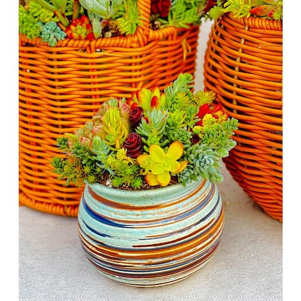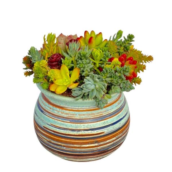 Succulent Plants Collection Flowers with Green Ceramic Container