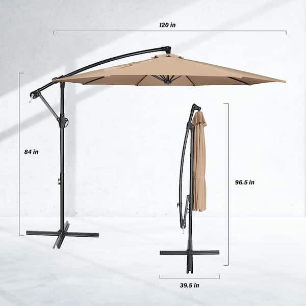 10 ft. Offset Umbrella Cantilever Patio Hanging Umbrella Outdoor Market Umbrella with Crank and Cross Base in Beige