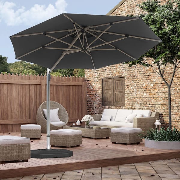 10 ft. Round Cantilever Patio Umbrella in Gray with Center Pole
