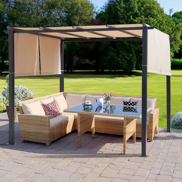 10 ft. x 10 ft. Flat Beige Top Outdoor Pergola Canopy with Adjustable and Retractable Canopy