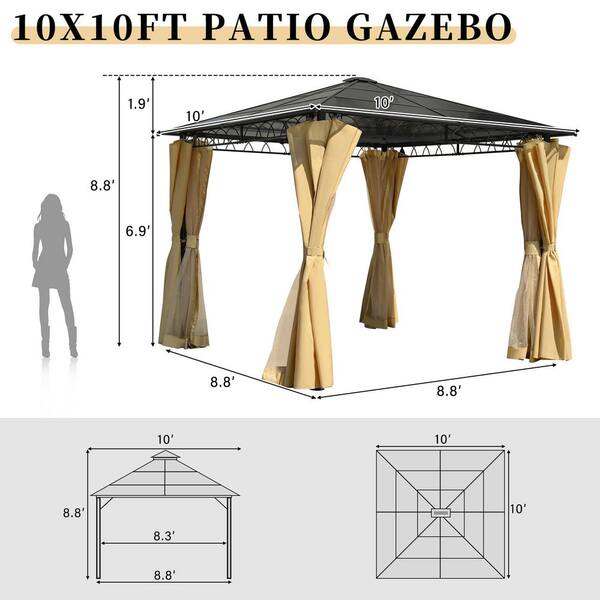 10 ft. x 10 ft. Hardtop Outdoor Gazebo with Aluminum Frame, Mosquito Netting and Privacy Screens, Patio Gazebo, Beige