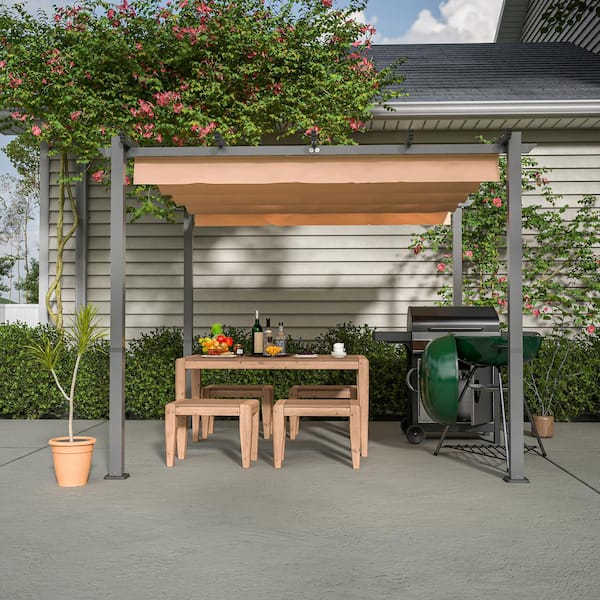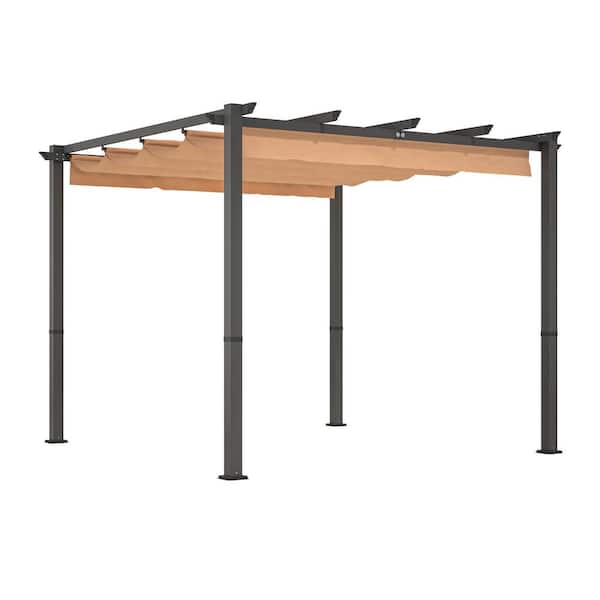 10 ft. x 10 ft. Khaki Aluminum Patio Pergola Grill Gazebo with Retractable Canopy