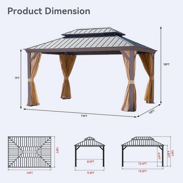 10 ft. x 14 ft. Outdoor Gazebo with Double Galvanized Steel Roof, Ceiling Hook, Yellow Mosquito Netting and Curtains