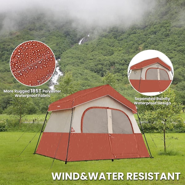 10 ft. x 8 ft. Red Outdoor 6 Person Camping, Portable Easy Set Up Family Tent for Hiking, Backpacking, Traveling