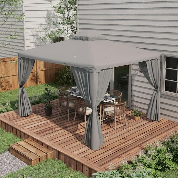 11.5 ft. x 9.5 ft. Gray Patio Gazebo, Outdoor Canopy Shelter with 2-Tier Roof and Netting, Steel Frame