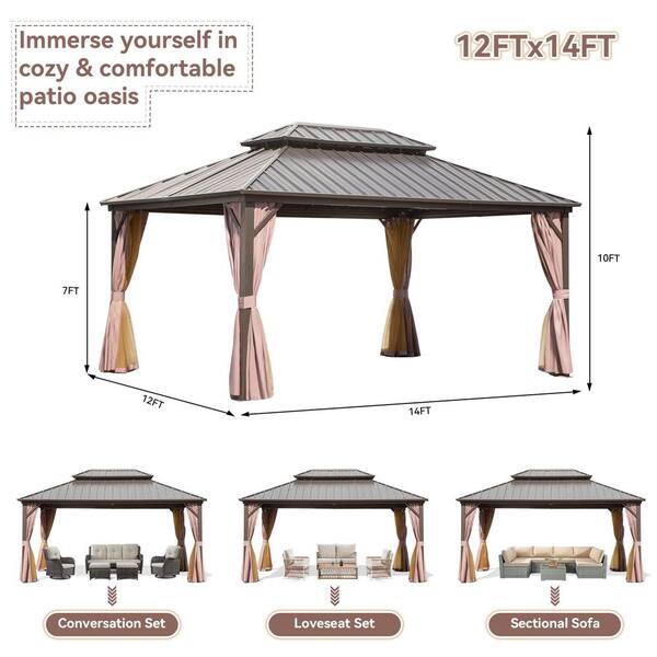 12 ft. x 14 ft. Aluminum Outdoor Gazebo Double Roof Canopy w/Netting, Curtains, Garden Tent for Patio, Backyard, Lawns