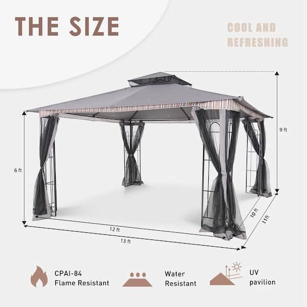 13 ft. x 11 ft. Gray Steel Outdoor Patio Gazebo with Mosquito Netting