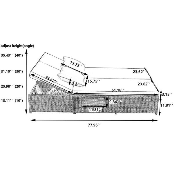 2-Person Brown Wicker Rattan Outdoor Patio Outdoor Recliner Double Sun bed Chair with Gray Cushions