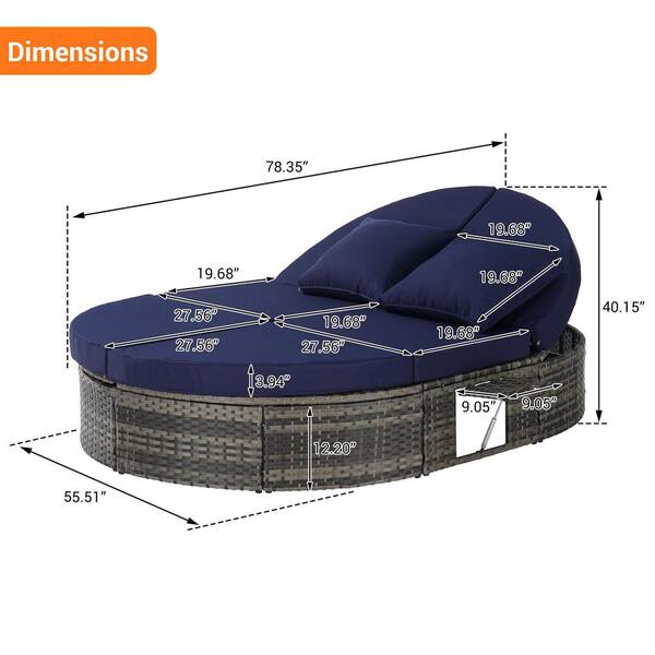 2 Person Composite Outdoor Day Bed with Dark Blue Cushions and Pillows