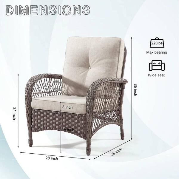 2-Piece Brown Wicker Patio Lounge Chair with Beige Cushion