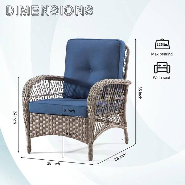 2-Piece Brown Wicker Patio Lounge Chair with Blue Cushion