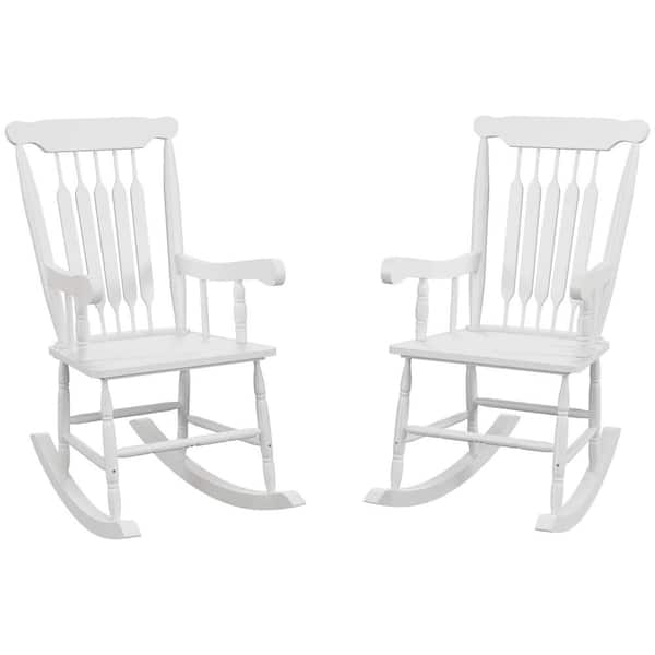 2-Piece Wood Outdoor Rocking Chairs, Patio Double White Swing Rocking Chair Loveseat with Powder Coated Steel Frame