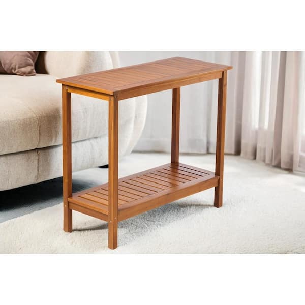 2-Tier Light Brown Side Table, Acacia Console Potting Table