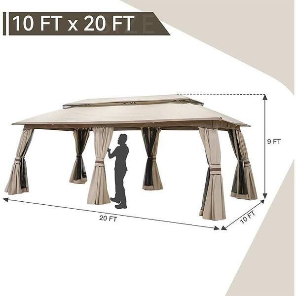 20 ft. x 10 ft. Beige Outdoor Double Tier Gazebo Tent with Side Mesh Curtains for Lawn, Backyard and Party
