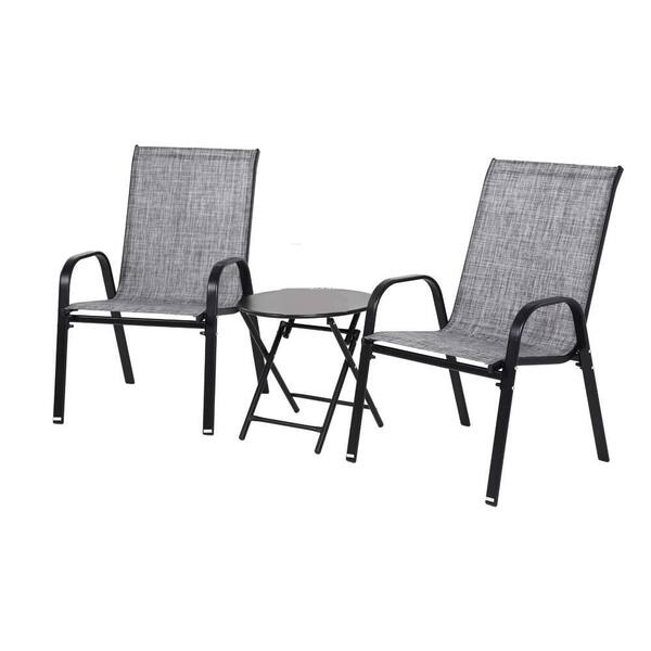 3-Piece Gray Metal Patio Conversation Seating Set, Outdoor Camping Chairs with Breathable Fabric & Folding Table