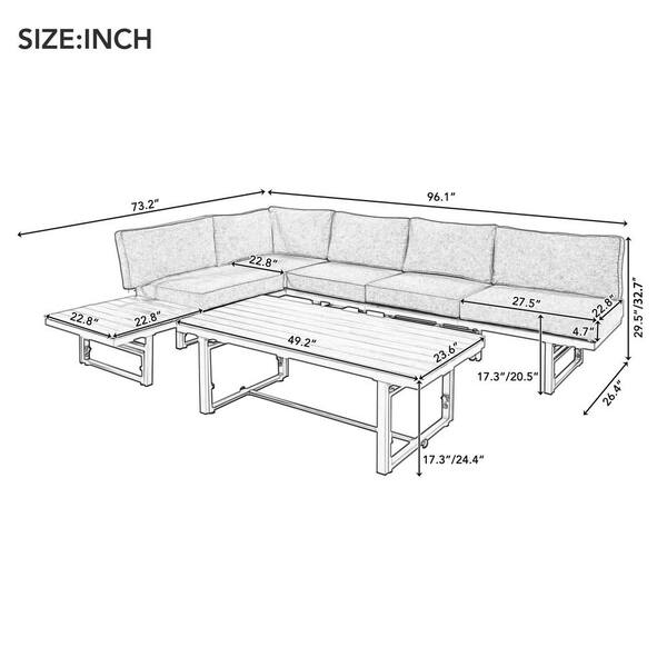 3-Piece Metal Patio Furniture Set, Modern Multi-Functional Outdoor Sectional Sofa Set with Beige Cushions