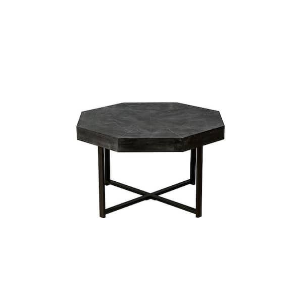 30 in. Antique Black Wood Coffee Table with Metal Legs