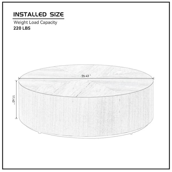 35.43 in. Black Modern Round Wood Coffee Table Center Table