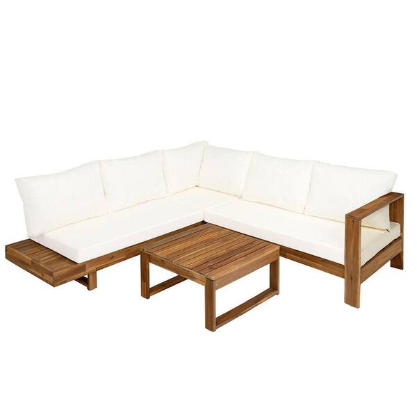 4-Piece Acacia Wood Outdoor Conversation Patio Furniture Set with Beige Cushions