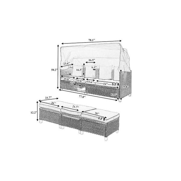 4-Piece UV-Proof Resin Wicker Outdoor Patio Day Bed with Retractable Canopy, with Gray Cushions