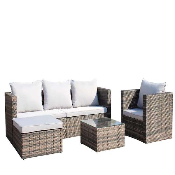 4-Piece Wicker Outdoor Sectional Set with Coffee Table and Gray Cushions, Outdoor Garden Patio Furniture Set