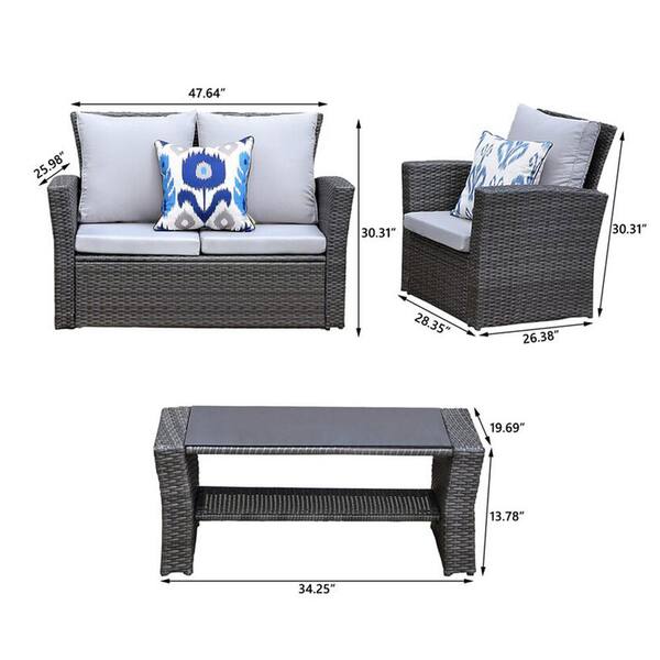 4-Pieces Outdoor Patio Furniture Set PE Rattan Wicker with Gray Cushions