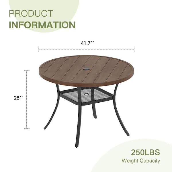 41.7 in. Brown Round Metal Outdoor Dining Table
